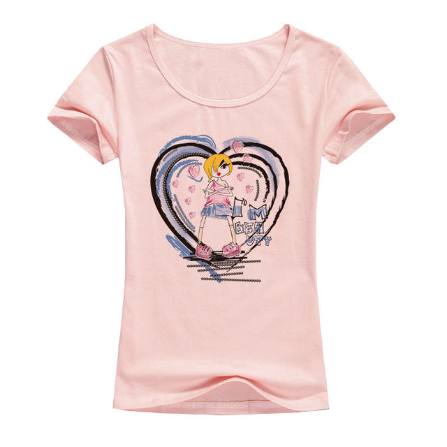 i m beauty girl Printed T Shirt Women Clothing Summer  Short Sleeve kawaii Tops woman's T-Shirts tees A69 - EssentialBoutiques